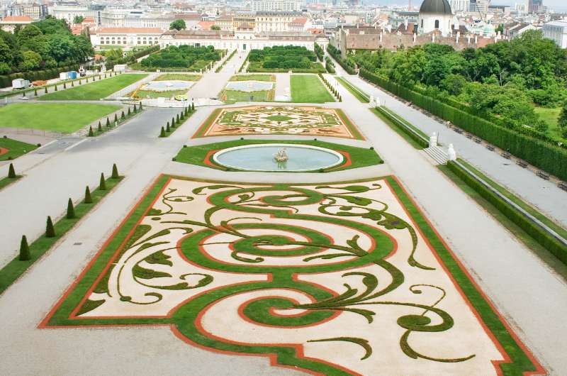 The Belvedere consists of the Upper Belvedere Palace (in the south), the Lower Belvedere Palace (in the north), and the 600 m (0.4 mile) long garden that’s between them, plus the Belvedere 21 art space.