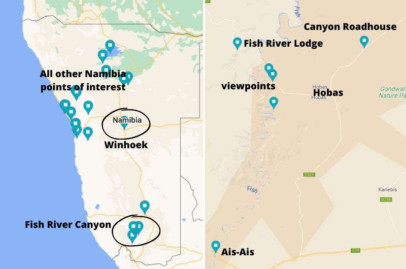 Namibia map and Fish River Canyon map